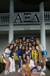 The week kicked off with “AXiD Spirit Day,” and our members enjoyed a Blenders and Bowls bar provided by our BA parents. We dusted off the butterfly clips and low-rise jeans for day two’s Y2K theme, “MC ‘22 is so Fetch!” On day three, “It’s Sweet to be an AXiD”, sisters donned pastel clothing, accessorized with candy necklaces, and ate ice cream from Mister Softee. DivaDance Austin warmed us up for our “80s Workout” day with a boy band themed dance class. “Pool Day'' provided the perfect opportunity to enjoy some fun in the sun with each other and relax after hours of hard work. Day Six was all about sisterhood, as we wrote heartfelt letters to each other and wore our matching Alpha Xi Delta work week T-shirts. Beta Alpha did a practice recruitment party with Alpha Delta Pi on Day Seven, with the theme “Fired Up for MC ‘22,” and we enjoyed a visit from the Austin Fire Department afterwards. As Work Week wrapped up, we got patriotic with a red, white and blue theme and made final preparations for recruitment in pajamas!